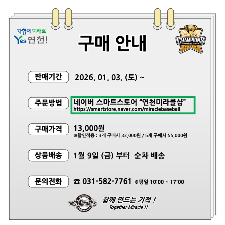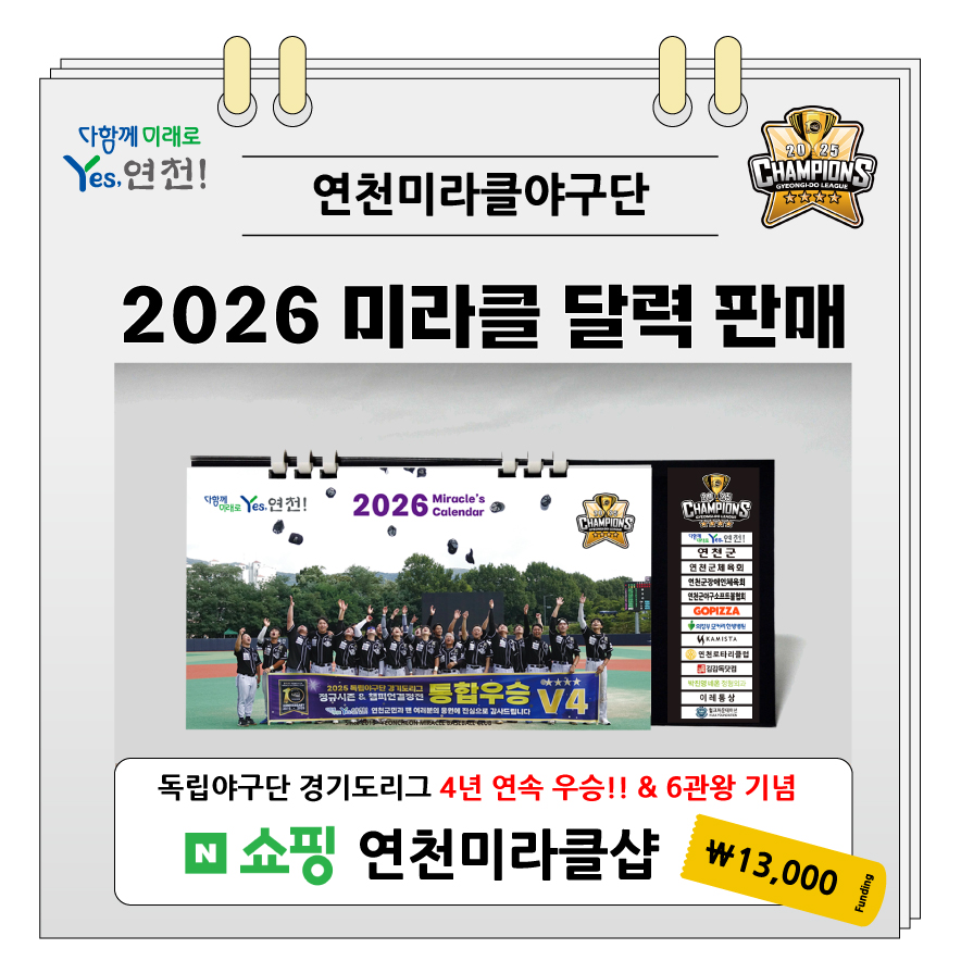 2025 우승 기념>> 연천미라클 2026 탁상달력